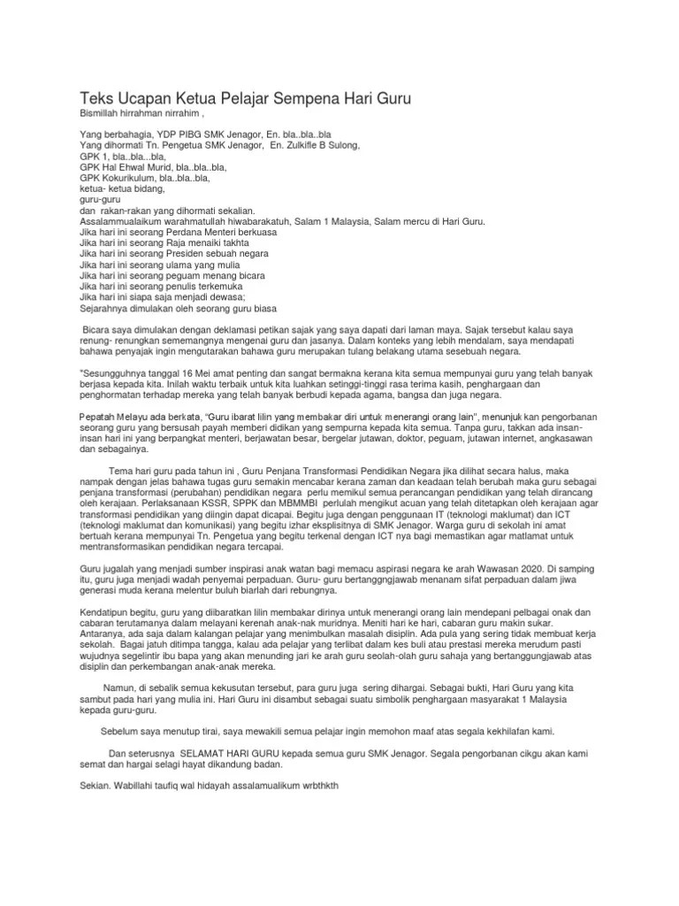 Contoh Teks Ucapan Hari Guru - Teks Ucapan Murid Sempena Hari Guru Omsplict